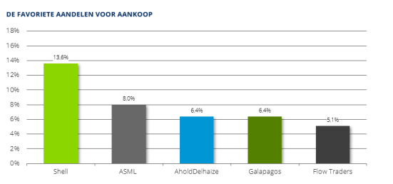 Shell is ondanks de historische verlaging van het dividend het favoriete aandeel om in te investeren, met ASML op gepaste afstand als tweede. Air France KLM is nog steeds met voorsprong het aandeel dat beleggers nu het liefst niet in portefeuille hebben.